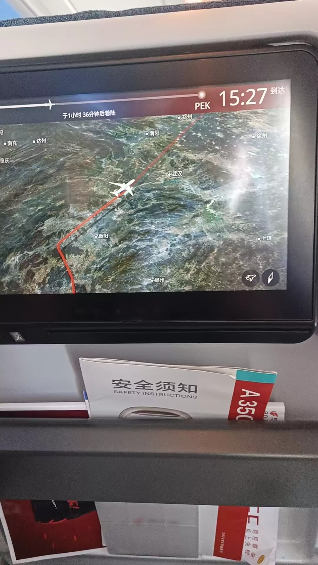 我是4月19号来的北京,从白云机场飞到北京首都。这是我人生第二次坐飞机,第一次坐飞机是中考结束之后从外婆家回广东的时候,坐了飞机,具体机型不记得了,只记得是一个窄体客机,飞机降落的时候我的耳朵非常不舒服,这也就让我对飞行留下了不太好的印象。这次坐飞机特意挑了宽体机型客机,执飞的是空客的a350-900,希望能改善一下我的耳朵状况。